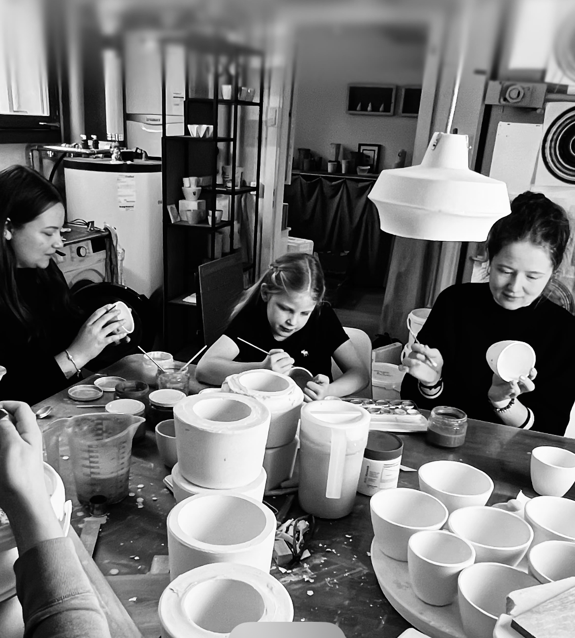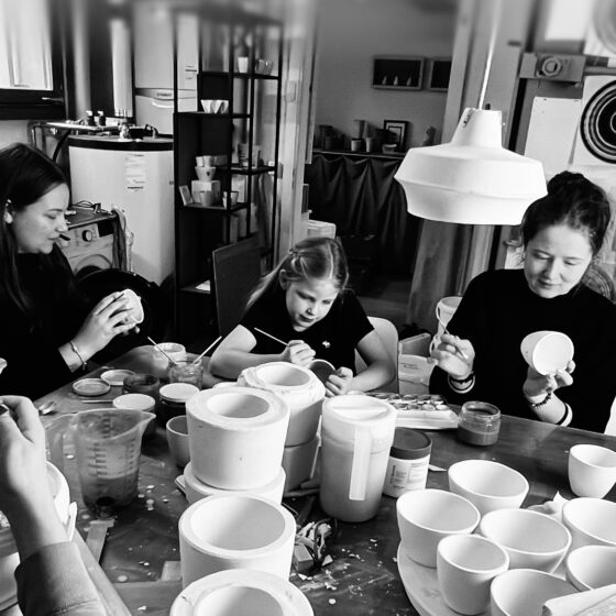 Meine beiden älteren Töchter sind ausgezogen, kommen aber natürlich immer wieder zu Besuch. Und ich hatte riesige Freude, als alle drei im Atelier zusammen Porzellan gossen. Mein Mann unterstützt mich tatkräftig und bremst mich auch mal aus, wenn ich mich übernehme. Er arbeitet als Klassenlehrer an der gleichen Oberstufe, an der ich bildnerisches Gestalten und Fotografie unterrichte.
